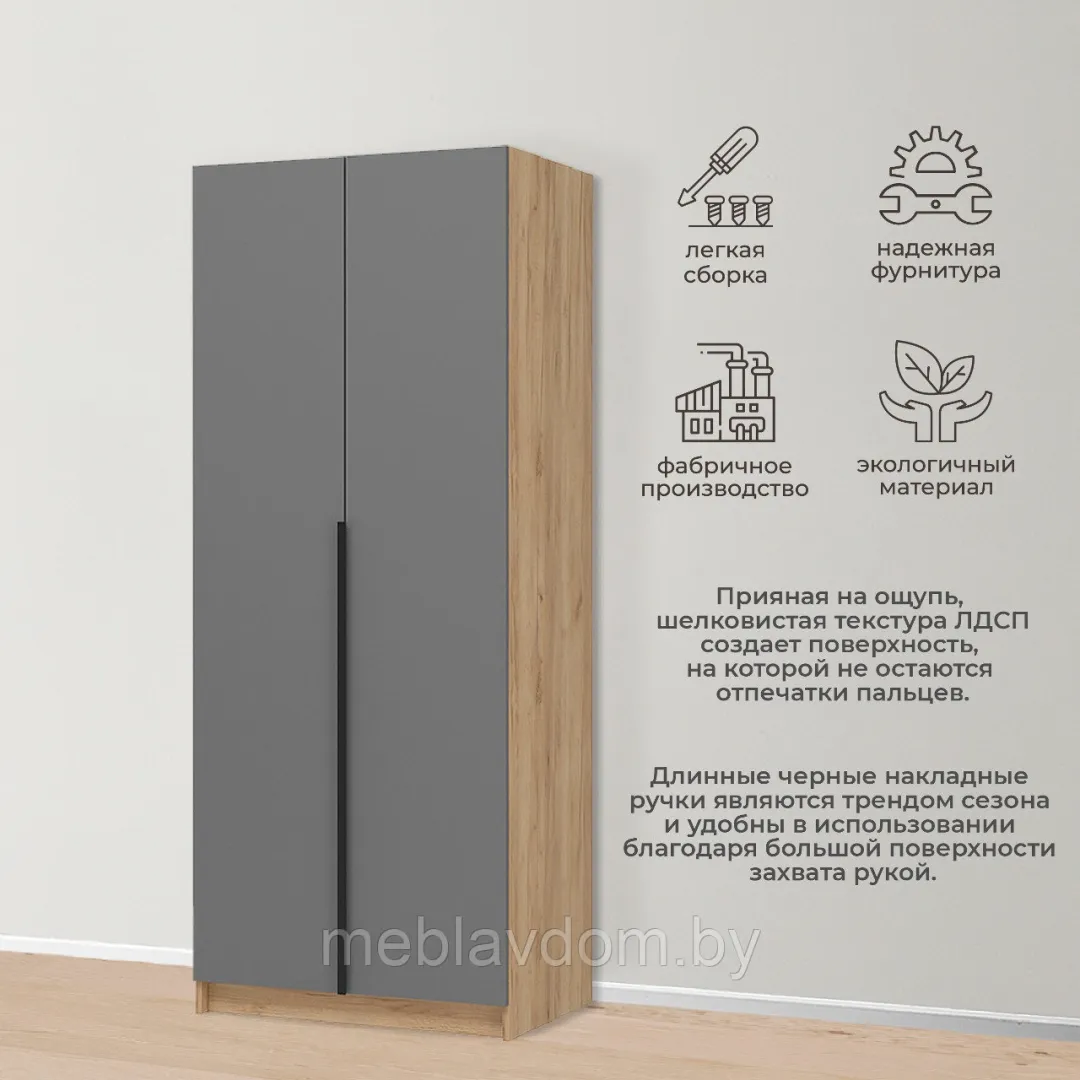 Шкаф Лион – это воплощение элегантности и функциональности. Его дизайн отличается простотой и лаконичностью, но при этом он выразителен и эффектен. Эта модель легко впишется в любой современный интерьер, придав ему уникальный стиль. Благодаря своей универсальности и спокойному цветовому решению, шкаф Лион гармонично смотрится как в спальне или детской, так и в гостиной или прихожей.